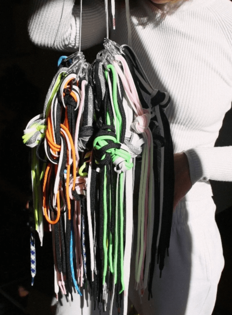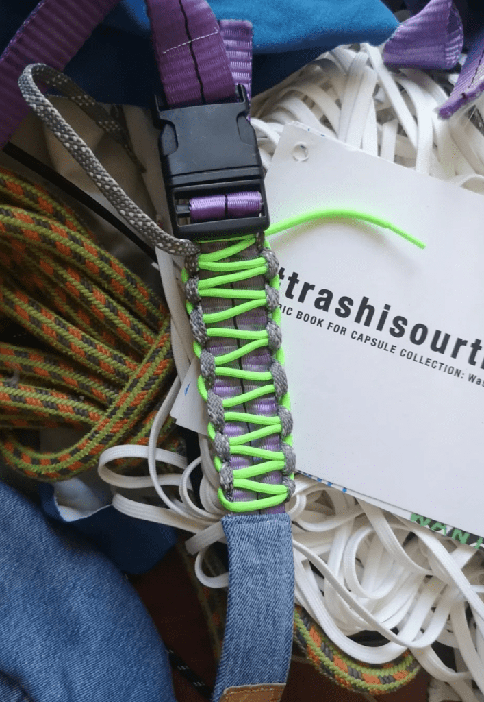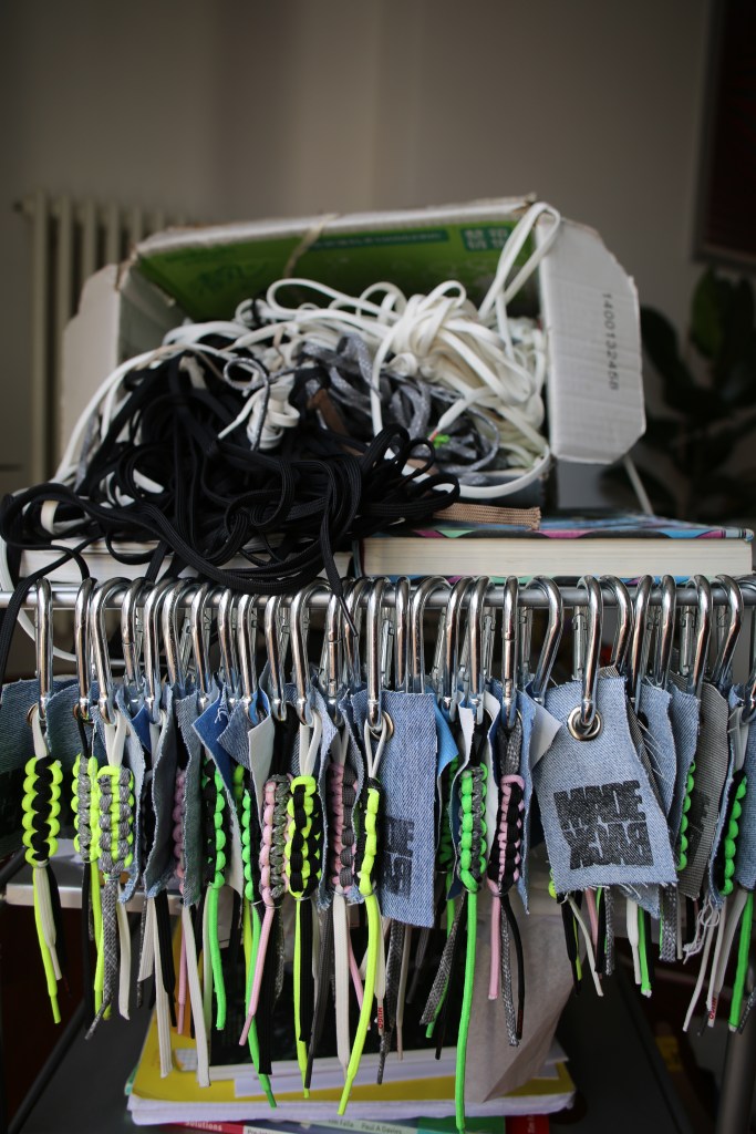 From the waste that we find in our local area, we create custom products and facilitate repairs on a wardrobe-2-wardrobe basis. This season’s theme has been shoelaces that product manufacturers don’t put on the market.